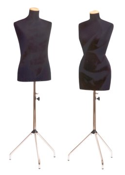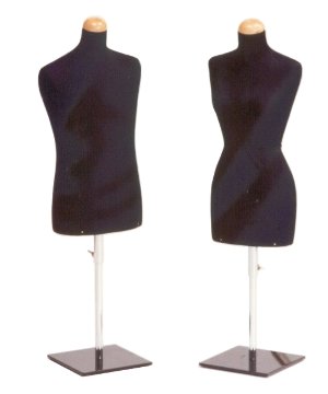 Hanno misure dimezzate rispetto ai manichini a taglia fissa standard. Completi di piedistallo cromato regolabile in altezza. Disponibili 2 modelli.